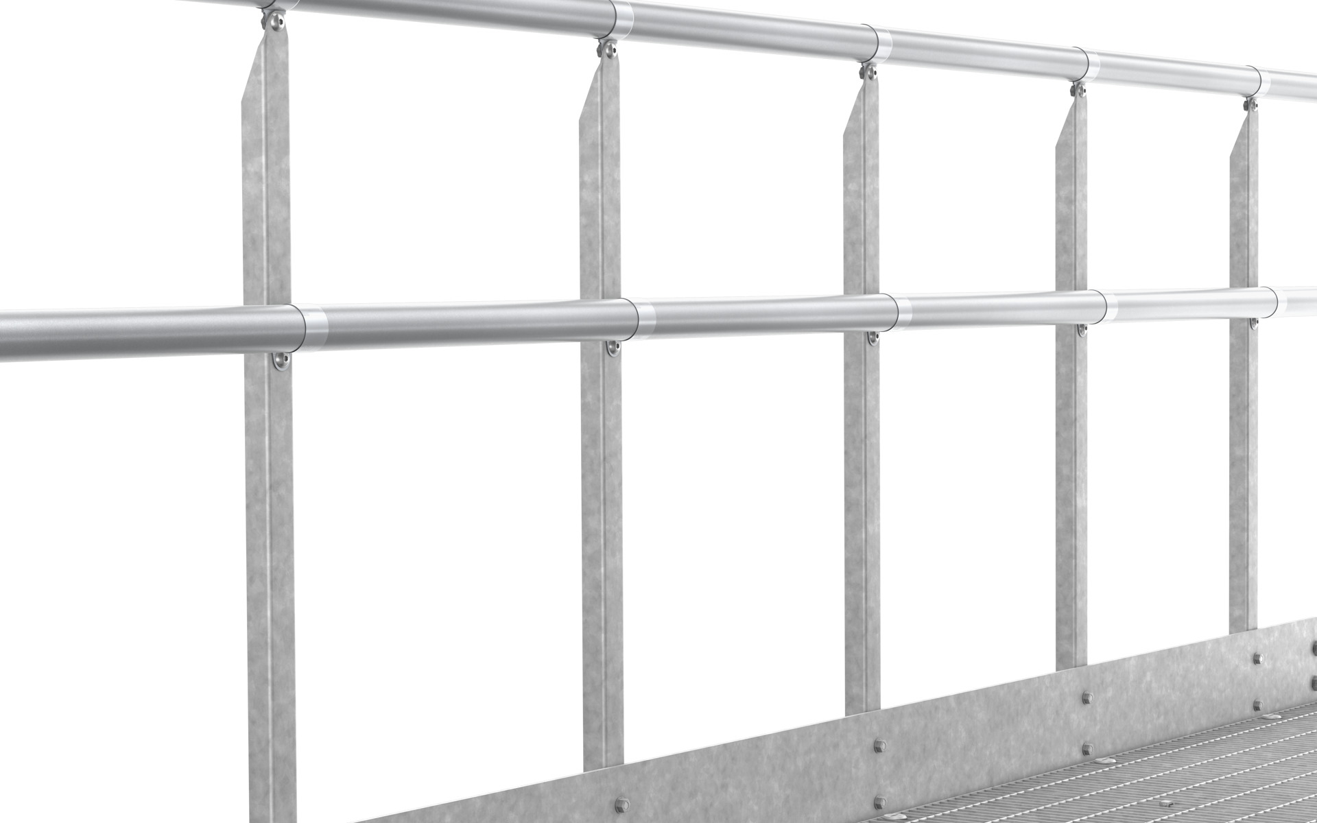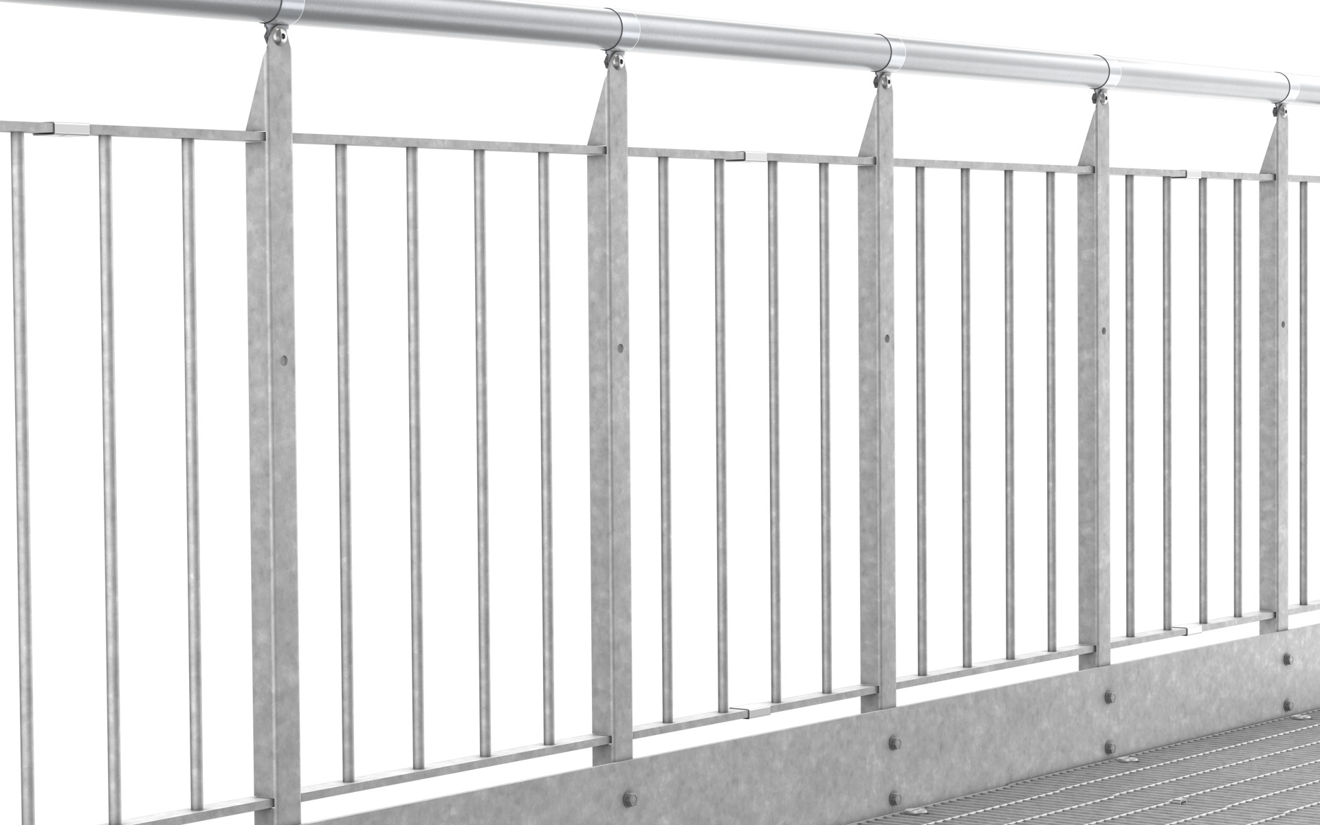 Et lagerført standardrekkverk med stendere c/c 500 mm.