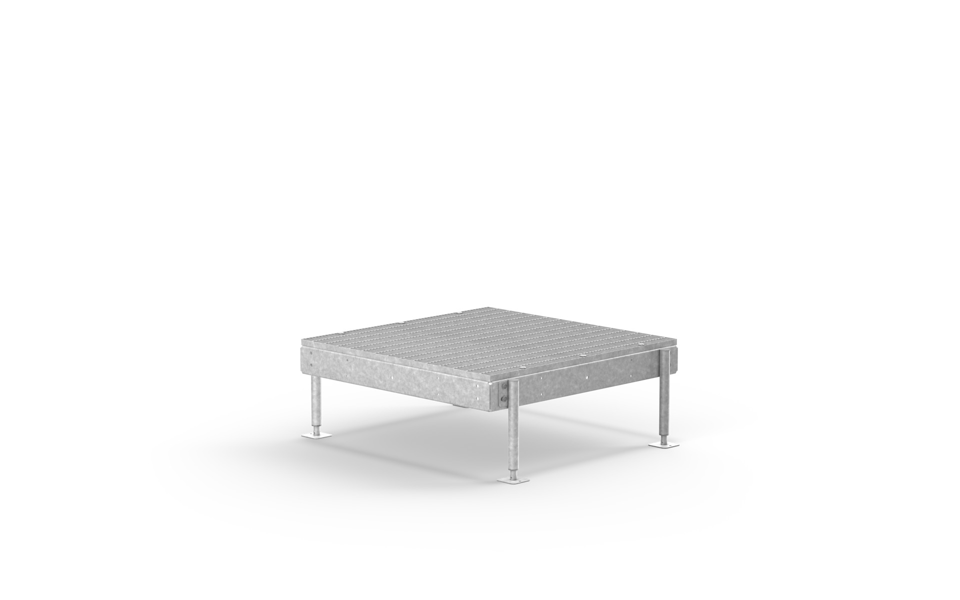 Støtteben av stålrør ø 42 mm i sett med 4 stk. I underkant presses en gjenget fôring inn i røret. En fotplate med et påsveiset gjenget rør som går inn i den gjengede fôringen, gir et justeringsmonn på 70 mm. Laveste høyde til reposets overside er lengden på støttebenet +55 mm og maksimal høyde +125 mm.