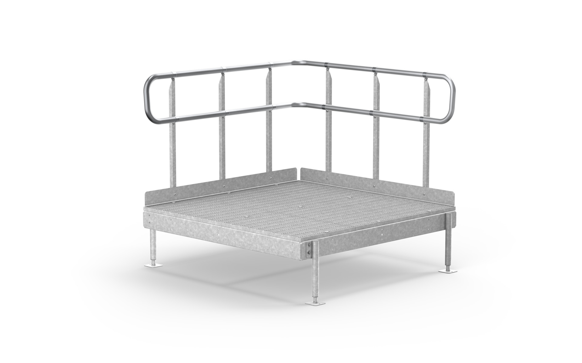 Vi lagerfører standardreposer til ramper av gitterrist. Disse reposene brukes også som hvilerepos eller svingrepos mellom to ramper. I henhold til gjeldende regler skal hvilerepos installeres i tilfeller der rampen er lengre enn 6 meter. Alle materialer er som standard varmforsinket.