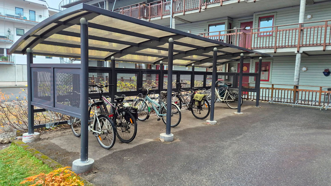 Beboerne på Vestre Havn Terrasse i Namsos utenfor Trondheim har fått en trygg og værbeskyttet sykkelparkering fra Weland AS. Ymer er et robust og vedlikeholdsfritt sykkelskur med aluminiumsprofiler som enkelt kan tilpasses ulike forhold og behov.