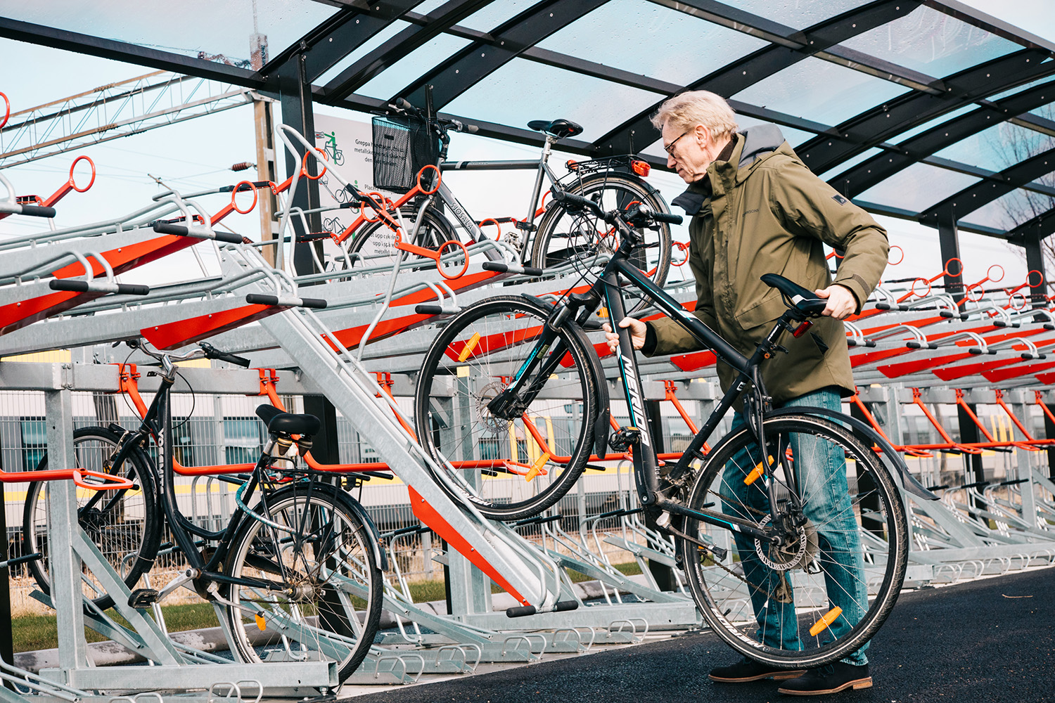 Weland sitt modulsystem for sykkelgarasjer gir mange muligheter og finnes i en rekke ulike utførelser – fra fastmonterte sykkelstativer til komplette parkeringsanlegg under tak, med smarte tilbehør som øker servicen for syklisten.